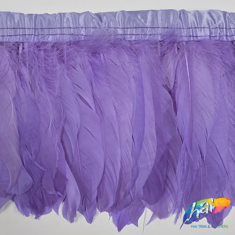 This bleached dyed goose/nagoire feather fringe is dyed in multiple colors. Each feather strip is strung on a ribbon sold per bundle of 1 yard (36 inches).