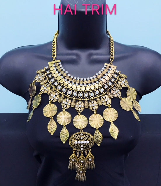 Trendy vintage necklace made of fine crystal rhinestones set on metal setting. Each metal pieces are connected by jump rings and chains. Each necklace has a lobster claw clasp and has a chain extender to fit all neck sizes. Perfect to use in Boho Chic theme events such as Burning Man and Coachella. Can also be used in photoshoots and also carnival events!