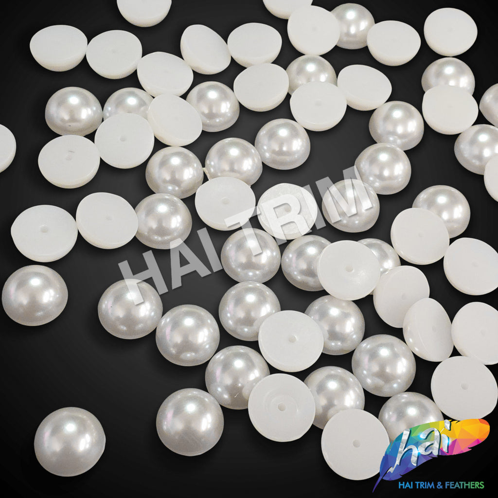 These are white flatback pearls in acrylic quality. Each pearl has a shiny silver natural finish. The back part is flat and has no holes.