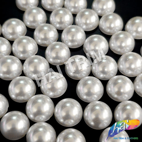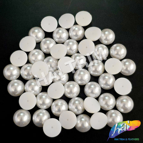 These are white flatback pearls in acrylic quality. Each pearl has a shiny silver natural finish. The back part is flat and has no holes.