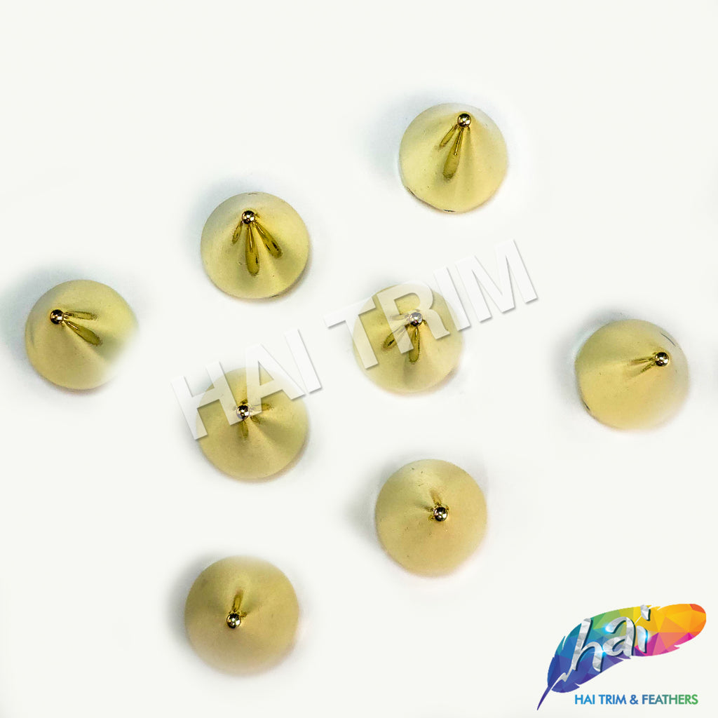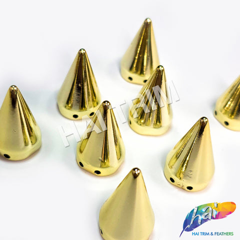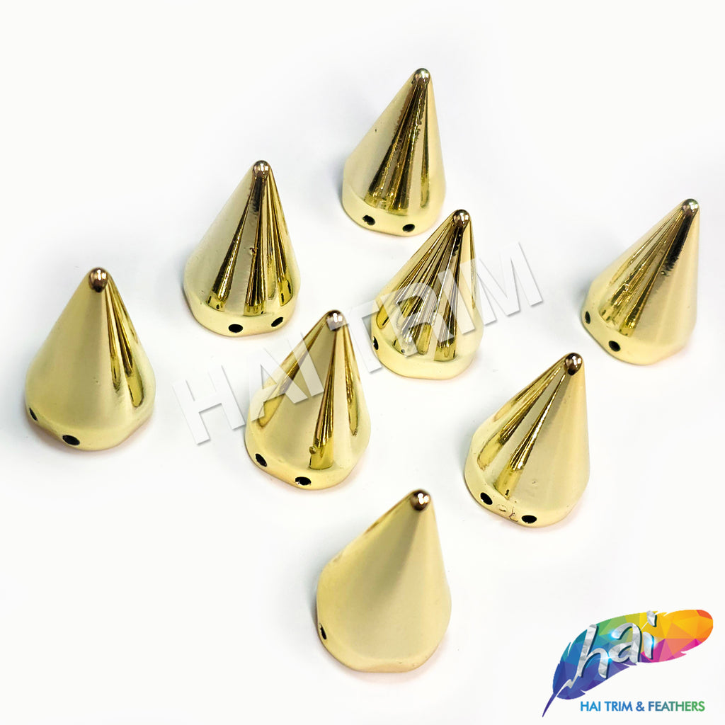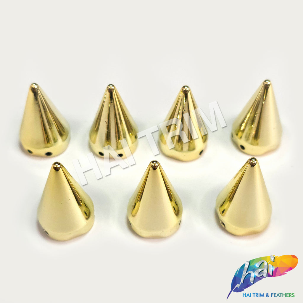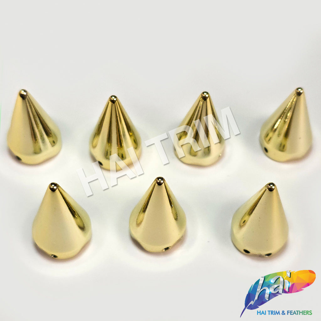 Edgy lightweight acrylic studs in metallic gold color. Each stud has a flat rounded square base and a semi-rounded tip.