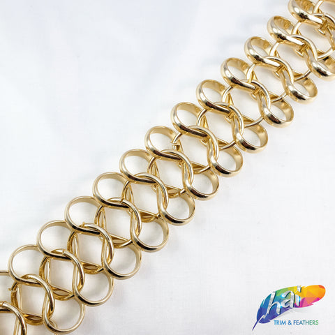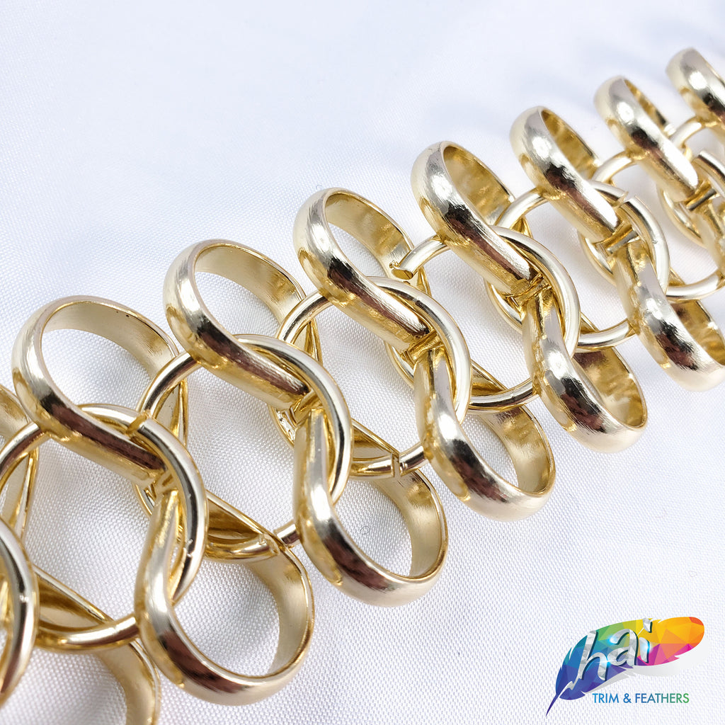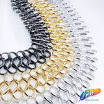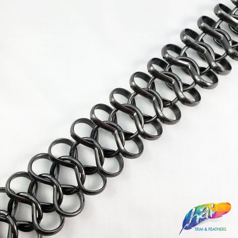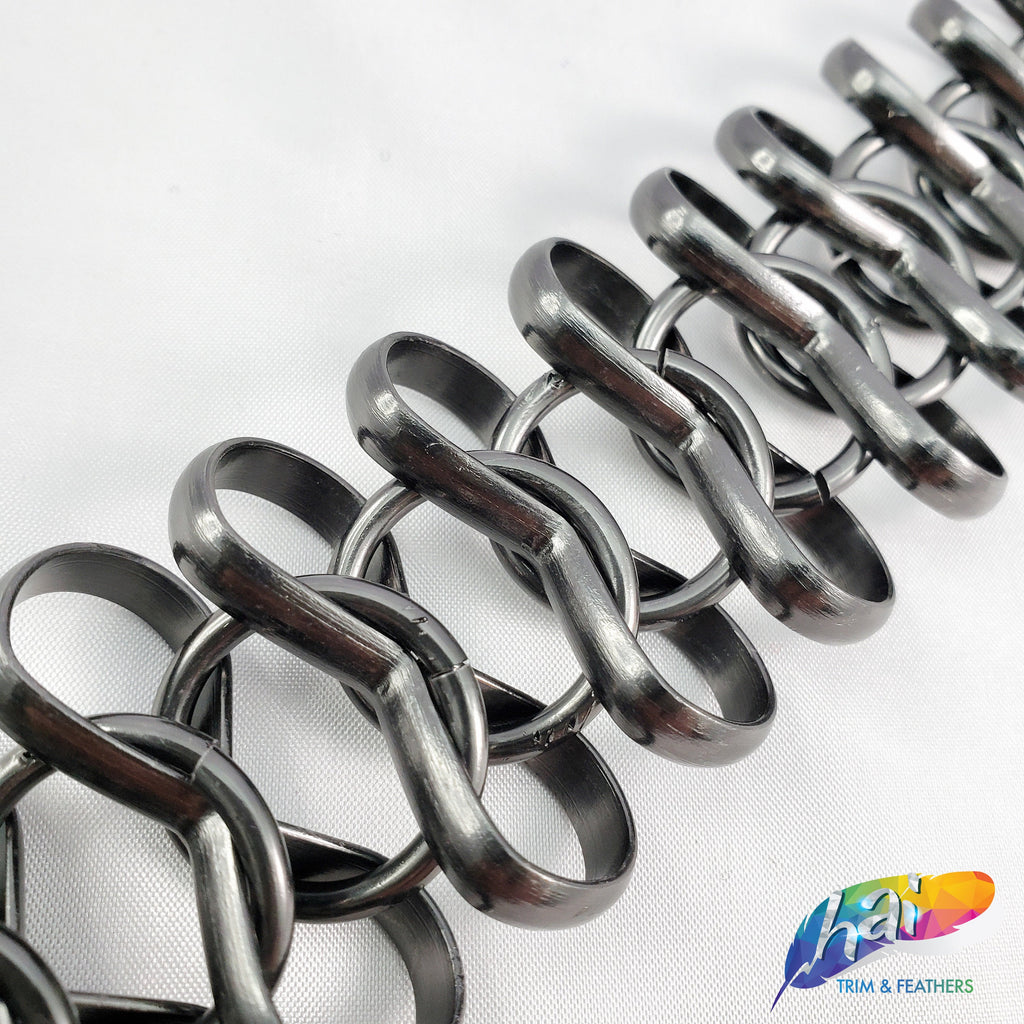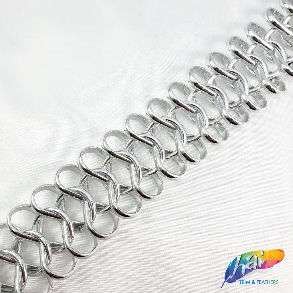 Lightweight metallic chain made of infinity shape chain links connected by a jump ring in the middle. These chains are made of aluminum, perfect to use as embellishment on your costume.