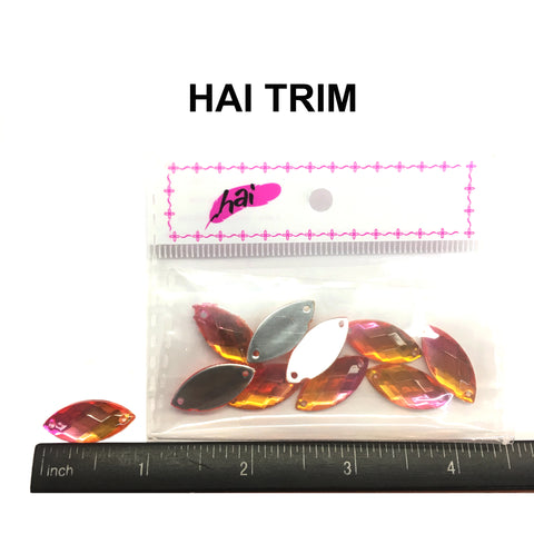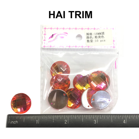 Ombre resin stones in 5 different shapes in orange/pink color. Each stone has two holes on the side for sewing. It can be glued as well using E6000 or any type of glue.
