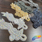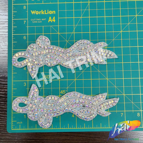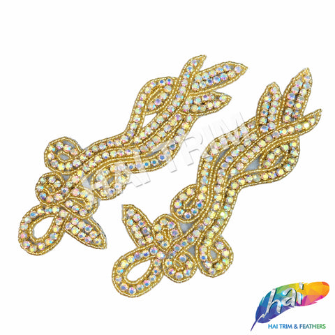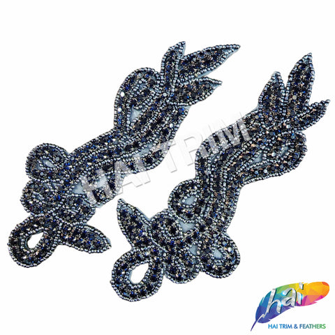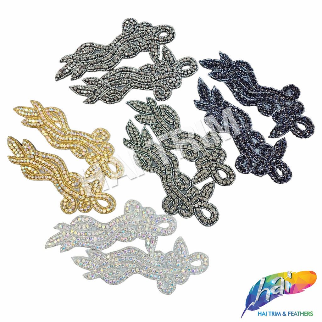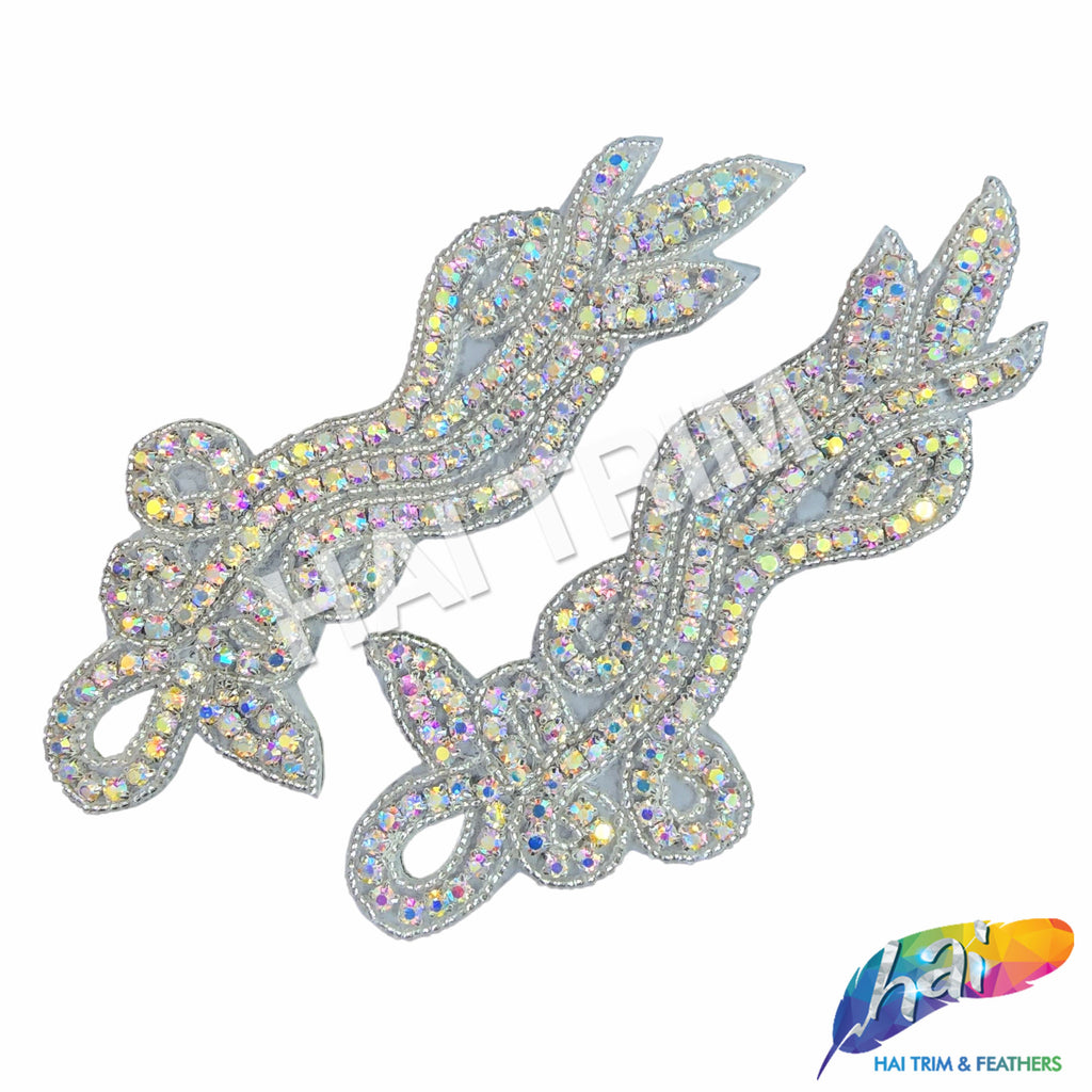 Beautiful beaded rhinestone applique made of premium quality pointy-back rhinestones on prong setting and bordered with stunning seed beads. Perfect for making headpieces and adding accent to your wedding or formal dresses.