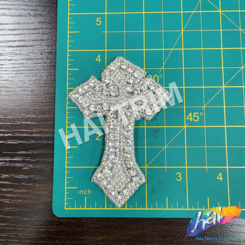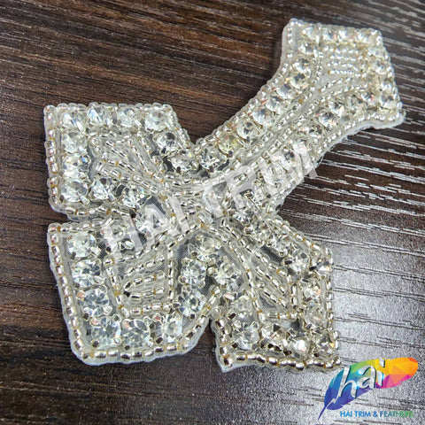 Beautiful beaded rhinestone applique made of premium quality pointy-back rhinestones on prong setting and bordered with stunning seed beads. Perfect for making headpieces and adding accent to your wedding or formal dresses.